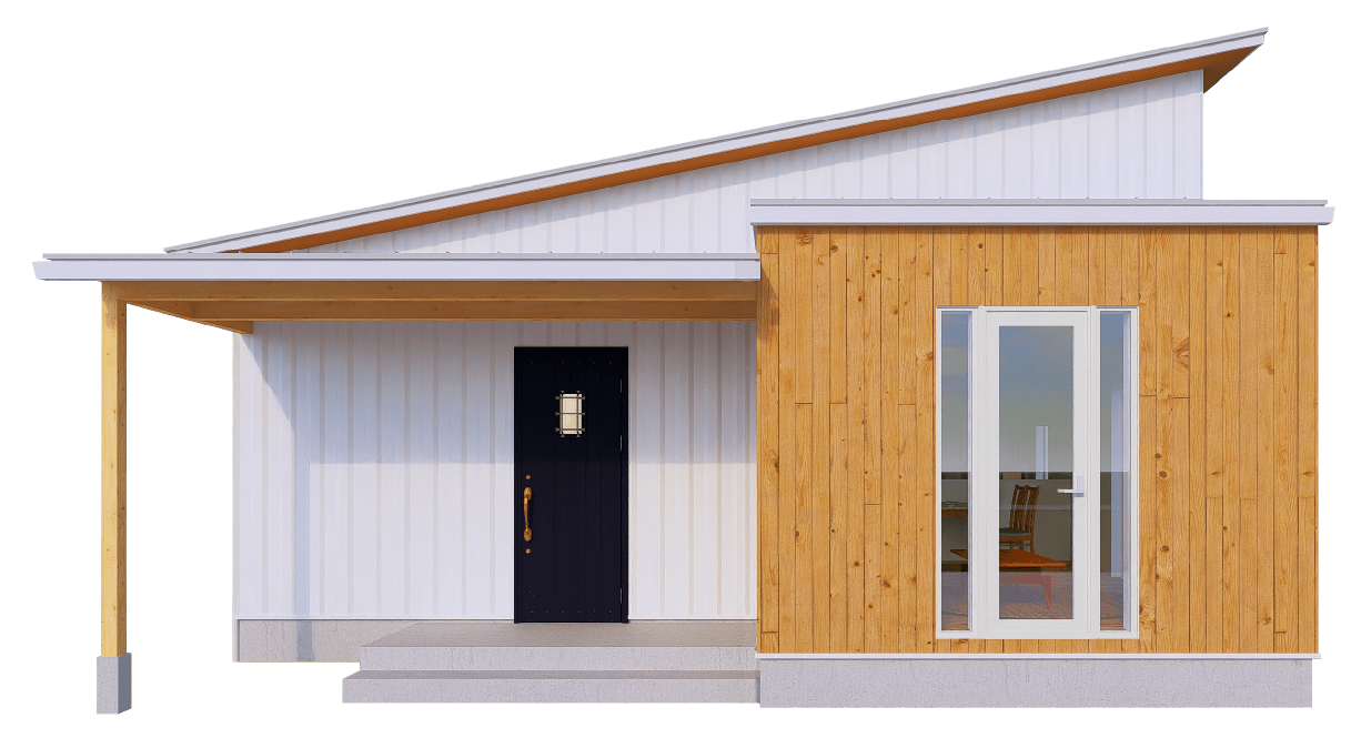 白をベースに木目をアクセントとした、青空に映える外観。片流れ屋根とBOXを組み合わせたシンプルなファサードは、どんな景観にも馴染みます。